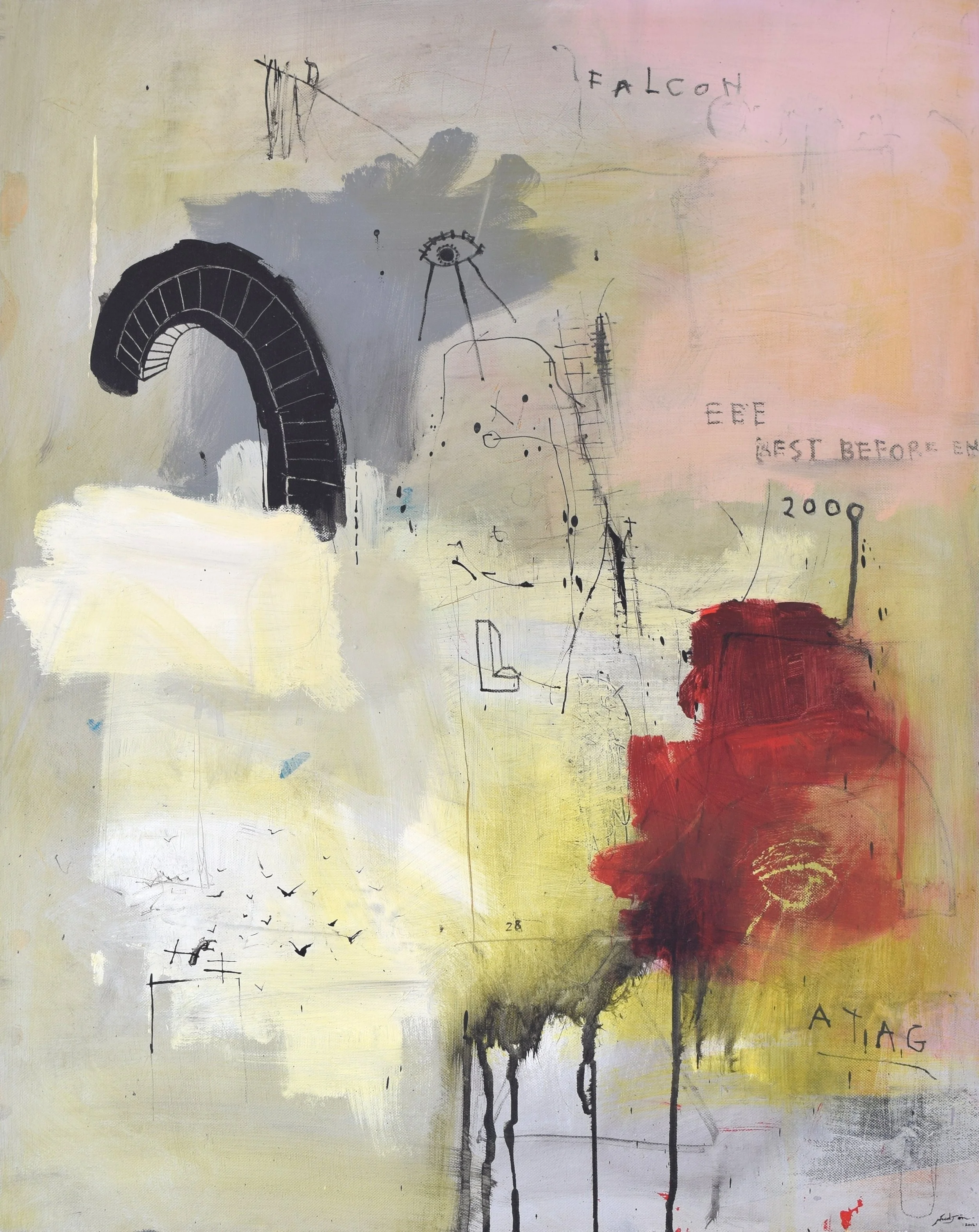 Acrylic paint, permanent ink and spray paint 80 x 60 x 4 cm